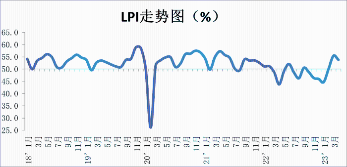 中國物流與采購聯(lián)合會發(fā)布的2023年4月份中國物流業(yè)景氣指數(shù)為53 8%,較上月回落1 7個百分點;中國倉儲..
